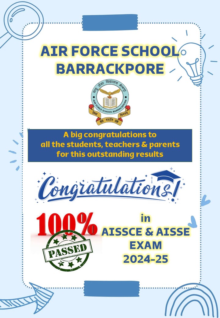 Air Force School Barrackpore came into existence in the year 1970 and was affiliated to CBSE w.e.f 1st April 1993 up to X-th standard. It is registered with Air Force Educational and Cultural Society under the Society’s Registration Act XXI of 1860 with registration no: SSS/108/EAC/2003. Air Force School Barrackpore is affiliated to CBSE vide code no: 2430047 till March 2023. Subsequently in the academic session 2013-2014 , it was upgraded to Senior Secondary School ( Commerce Stream) are.f 01 April 2014 vide letter no. CBSE/ AFF/Govt Wing/ 2430047 (old)/ 2480008 (new) / 2014/ 4279 dated 17 January 2014.